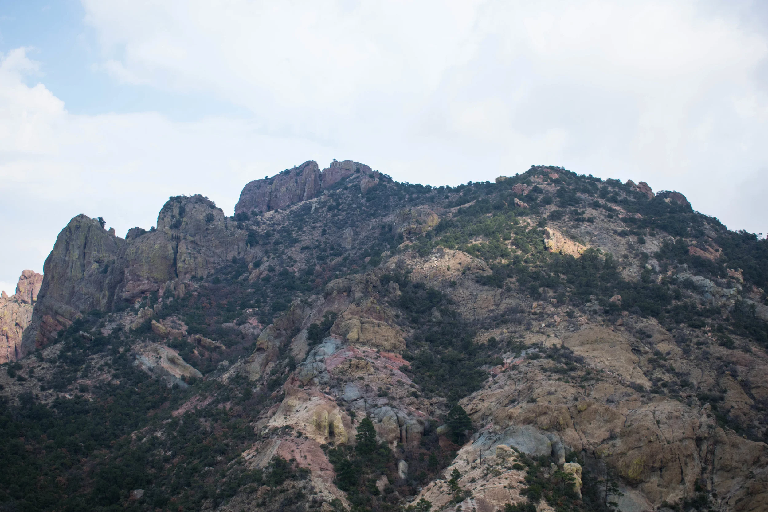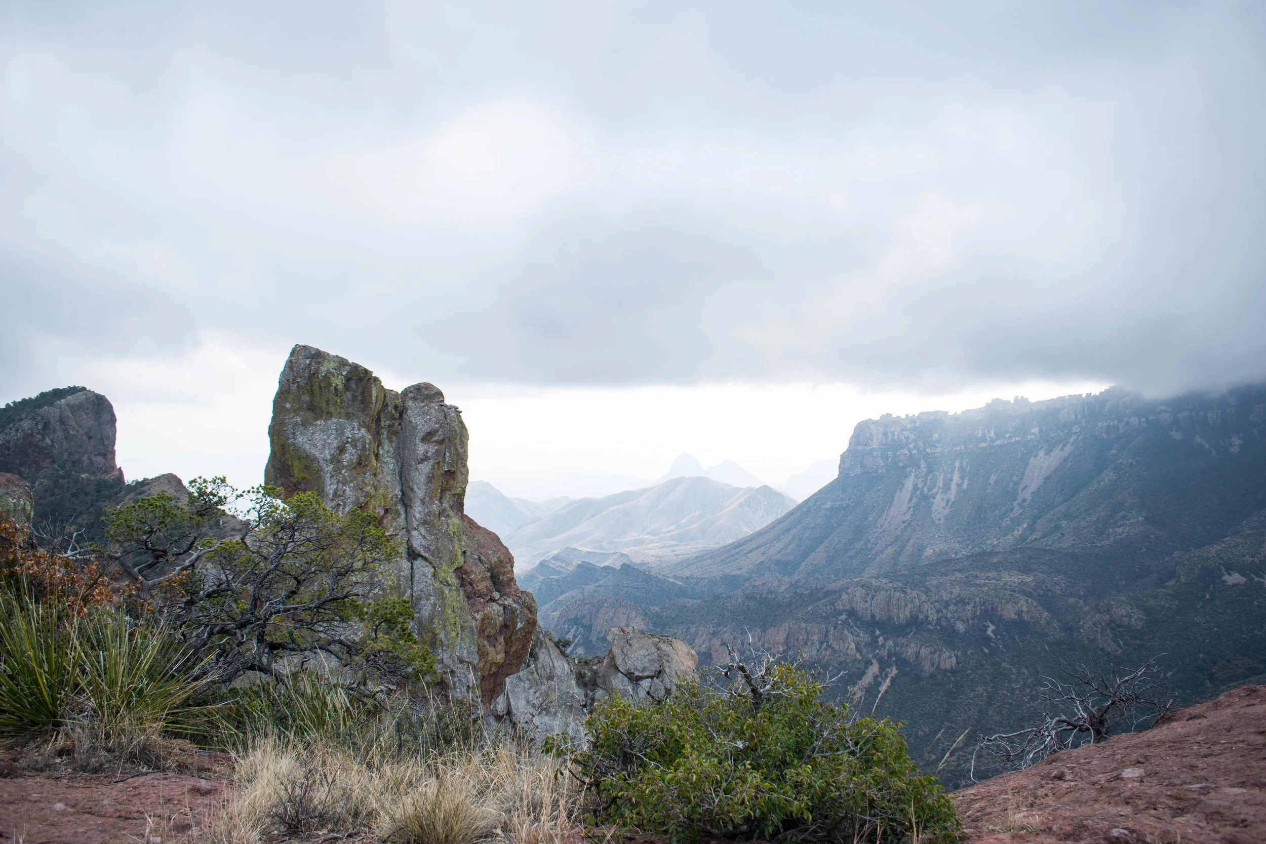Next I headed into the Chisos Mountains to hike the Lost Mine Trail (spoiler alert—I didn't find a mine. I guess it was lost...). It was a 4.2 mile round trip to the top, and the elevation was about 7,000 feet. The weather was pretty overcast and cold on the way up, but the view from the top was spectacular.